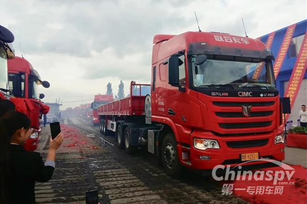 聯(lián)合卡車(chē)首批20臺(tái)LNG牽引車(chē)交付新疆洪通物流