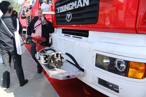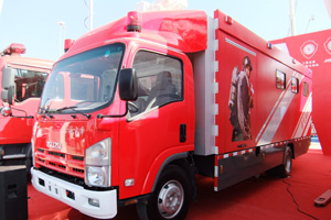 上海金盾特種車輛裝備有限公司研發(fā)生產(chǎn)的PM30 AT型快速調(diào)動泡沫消防車在博覽...