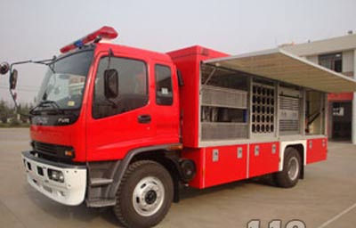 該車由FVR34J2型五十鈴底盤改裝而成,全車配備有充氣設(shè)置全套、固定照明系統(tǒng)和移動(dòng)照明系統(tǒng)。其中,充氣系統(tǒng)可同時(shí)充6具空氣呼吸器(6.8L和9L碳纖維氣瓶均可),充氣時(shí)間為90秒,車輛可放置92具備用空氣呼吸器氣瓶,可保障50余名戰(zhàn)斗員同時(shí)使用空氣呼吸器具。