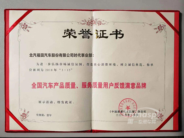 近日,福田時代被《中國質量技術監(jiān)督》雜志社列為2018年3.15“全國汽車產(chǎn)品質量、服務質量用戶反饋滿意品牌”,這是對福田時代出色質量和服務的又一見證。