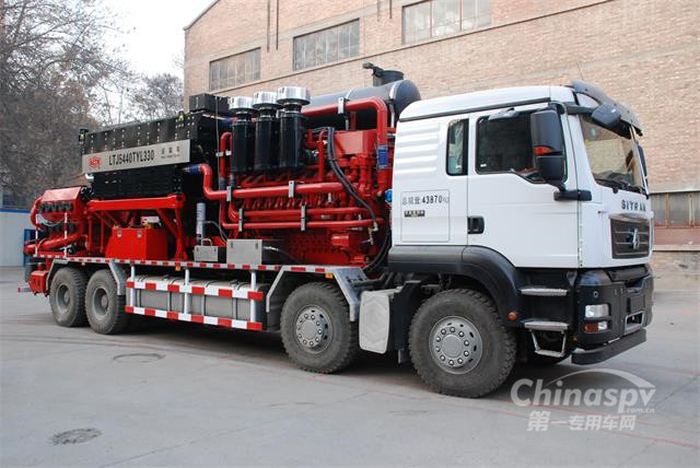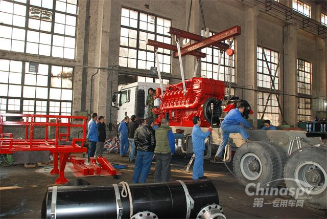 蘭州盛達采油設備制造公司自2016年11月開始投入研發(fā)3000型壓裂機組,采用自主知識產權和核心技術,實現(xiàn)該壓裂車機組重量不超過44噸,外形總長小于12米。盛達3000型壓裂車配置了重汽與德國曼聯(lián)合生產的8×4底盤車,符合歐Ⅲ排放的16V4000S83L底特律柴油機,以及其自主研發(fā)的5ZB300/140五缸壓裂泵。