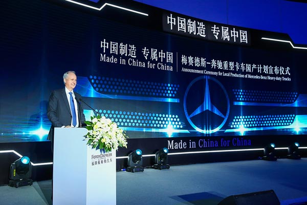 戴姆勒股份公司董事會(huì)成員、負(fù)責(zé)大中華區(qū)業(yè)務(wù)的唐仕凱(Hubertus Troska)表示:“我們希望與中國(guó)市場(chǎng)共同成長(zhǎng),乘用車業(yè)務(wù)如此,商用車業(yè)務(wù)同樣如此。中國(guó)卡車市場(chǎng)正經(jīng)歷轉(zhuǎn)型階段,特別是長(zhǎng)途運(yùn)輸領(lǐng)域,電子商務(wù)和物流產(chǎn)業(yè)的蓬勃發(fā)展帶來(lái)了可觀的市場(chǎng)機(jī)遇。我們相信中國(guó)卡車市場(chǎng)擁有進(jìn)一步發(fā)展的潛力,并將堅(jiān)定不移地為其長(zhǎng)期發(fā)展貢獻(xiàn)力量。今天不僅是戴姆勒本土化進(jìn)程的又一里程碑,也是中德合作典范的又一例證。”