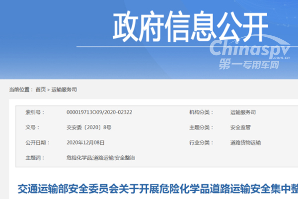 交通運(yùn)輸部開展危險(xiǎn)化學(xué)品道路運(yùn)輸安全集中整治工作