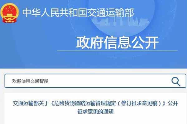 交通運(yùn)輸部關(guān)于《危險(xiǎn)貨物道路運(yùn)輸管理規(guī)定(修訂征求意見(jiàn)稿)》公開(kāi)征求意見(jiàn)的通知