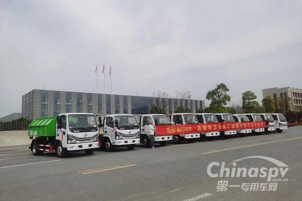 湖北程力集團(tuán)東風(fēng)小多利卡套臂垃圾車批量發(fā)車