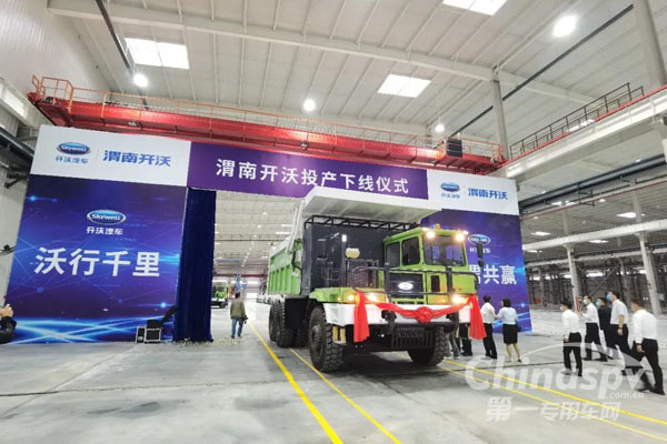 現(xiàn)場,在眾位領導、嘉賓的共同見證下,一輛開沃純電動礦用自卸車“身披紅花”、緩緩駛出,成為關注焦點。作為渭南開沃首臺下線車輛,該車下線標志著渭南開沃項目建設取得階段性成果,為提升當?shù)匦履茉串a業(yè)發(fā)展水平、拓展新能源汽車市場應用帶來有力支撐。