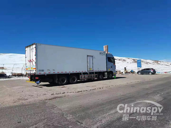 青藏線大多行駛的是倉欄半掛車或者17米5大板,而冷藏車在青藏線上絕對(duì)是“稀罕物”。
