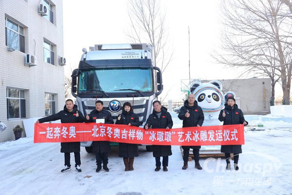 北京冬奧吉祥物“冰墩墩”藝術冰雕啟運 歐曼冷鏈全程護航一起奔冬奧