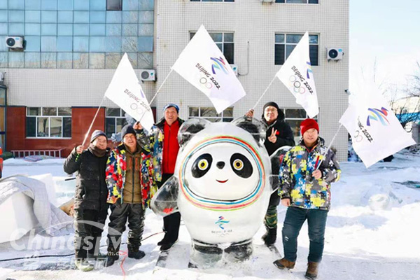 劉德臣以松花江上的堅(jiān)冰為原材,以冬奧會(huì)吉祥物“冰墩墩”為原型親手雕刻出一座重達(dá)數(shù)噸的藝術(shù)冰雕。從取冰、粘冰、雕刻、到著色,劉德臣率領(lǐng)團(tuán)隊(duì)在室外零下20攝氏度的條件下,歷經(jīng)10天雕刻完成。