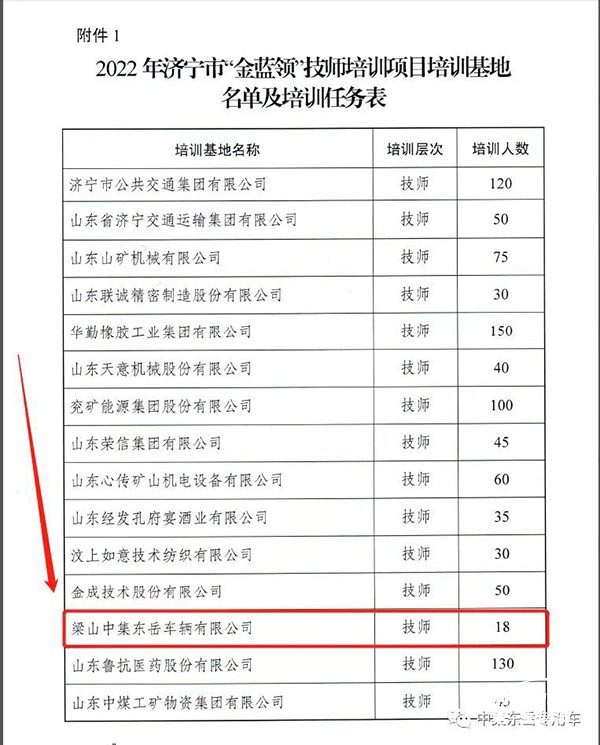 中集東岳通過(guò)“濟(jì)寧市“金藍(lán)領(lǐng)”技師培訓(xùn)項(xiàng)目基地”申請(qǐng)