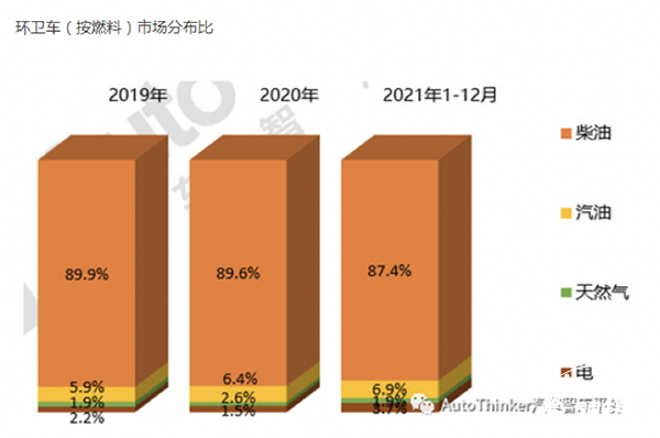 截圖4,2019年—2021年各類動力環(huán)衛(wèi)車銷量占比(來源:汽車智庫平臺)