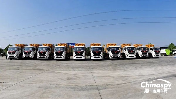 程力集團(tuán)攜手東風(fēng)商用車重點(diǎn)打造的25噸天龍勾臂垃圾車商品正式投放市場(chǎng),首批下線的23臺(tái)車分兩次交付行業(yè)大客戶。