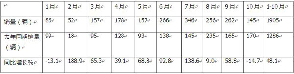 總體看,今年1-10月各月新能源冷藏車銷量起伏較大,而且各月銷量規(guī)模都不大。主要還是因為受到新能源的續(xù)航里程所限制。今年1-10月冷藏車?yán)塾嬩N售1905輛,同比增長近5成(48.1%),同比增幅相對當(dāng)前商用車市場的大降還是比較亮眼的,主要還是去年銷量基數(shù)較低、加之當(dāng)前“雙碳”戰(zhàn)略的持續(xù)發(fā)力所致。