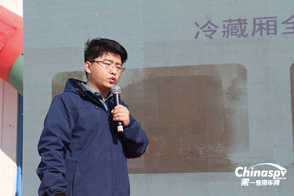 發(fā)布會現(xiàn)場通邁冷藏車總經(jīng)理胡守鵬發(fā)出了“通邁冷藏車,保鮮更安全”的口號,并且提出了通邁“安全永遠是冷藏車研發(fā)首位”的造車理念,并以車輛運輸安全、貨物交付安全、人員裝卸貨安全三大安全點為核心打造全方位安全的冷藏車。