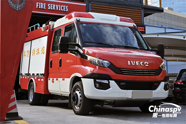Daily底盤(pán)改裝的消防車(chē)為永強(qiáng)PM20輕型泡沫消防車(chē),是永強(qiáng)2噸級(jí)別泡沫消防車(chē)?yán)锏母叨塑?chē)型。采用依維柯70C17H底盤(pán),即7噸170馬力的Daily,搭載依維柯HI MATIC自動(dòng)變速箱。