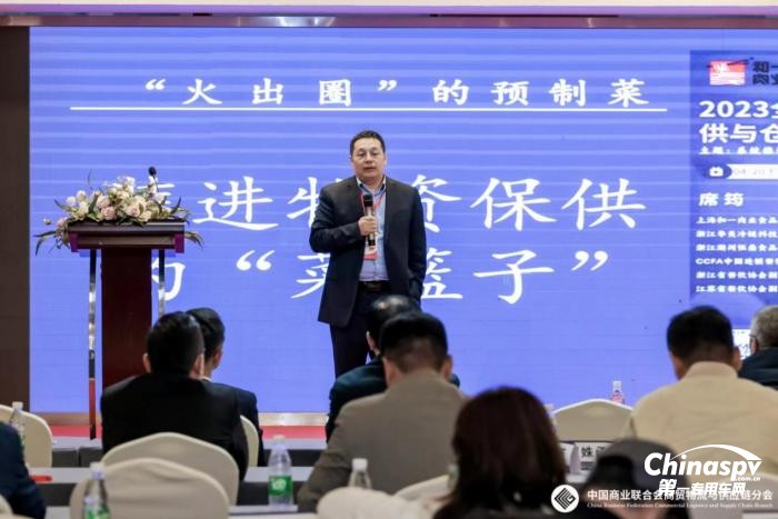 中國(guó)商業(yè)聯(lián)合會(huì)商貿(mào)物流與供應(yīng)鏈分會(huì)會(huì)長(zhǎng)干為在大會(huì)上發(fā)布《我國(guó)城市生活物資流通發(fā)展趨勢(shì)及2023年重點(diǎn)推進(jìn)工作》報(bào)告。