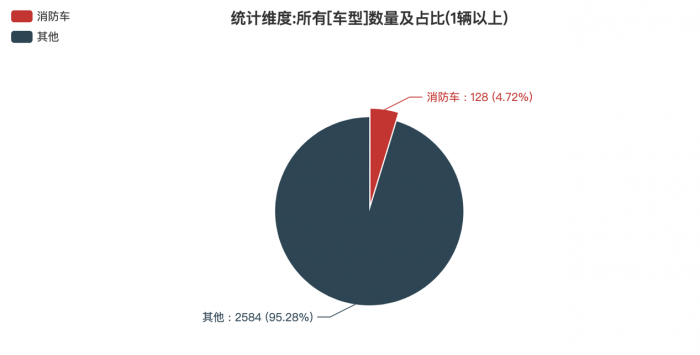第370批新車產(chǎn)品公示中的2712輛產(chǎn)品中,消防車(128輛,占比4.72%)。