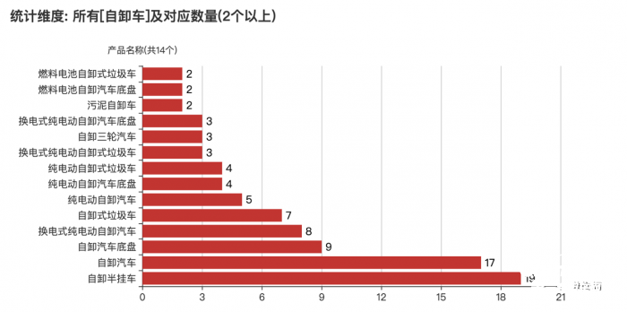 數(shù)量在2臺以上的自卸車車型及數(shù)量