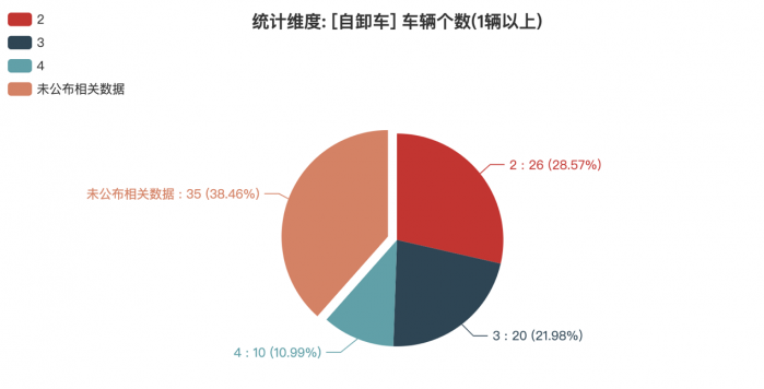 本次公告中的91款自卸車中,2軸(26輛,占比28.57%)、3軸(20輛,占比21.98%)、4軸(10輛,占比10.99%)、未公布相關(guān)數(shù)據(jù)(35輛,占比38.46%)。