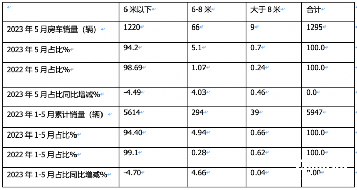 那么2023年5月房車銷量有啥具體特點(diǎn)?現(xiàn)進(jìn)行扼要解析。