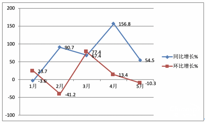 三、同比增55%環(huán)比降10.3%,銷量居今年1-5月各月第二