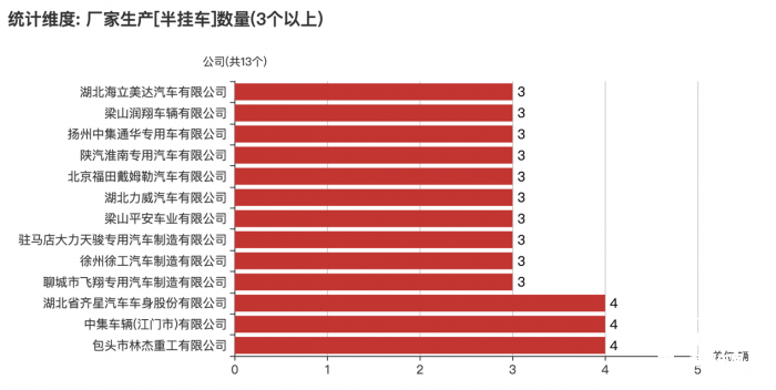 數(shù)量在3臺(tái)以上的半掛車企業(yè)