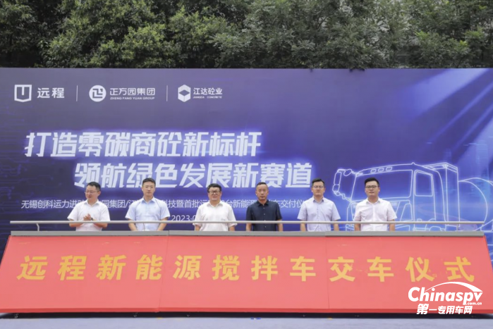2023年7月16日,以“打造零碳商砼新標(biāo)桿 領(lǐng)航綠色發(fā)展新賽道”為主題,無錫創(chuàng)科運力進(jìn)駐正方園集團(tuán)/江達(dá)節(jié)能科技暨20臺遠(yuǎn)程新能源攪拌車交付儀式在無錫成功舉辦。此次交付,將為零碳商砼在無錫的規(guī)?;瘧?yīng)用起到示范作用。