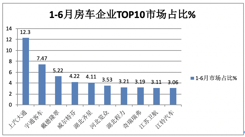 1、在2023年1-6月房車?yán)塾嬩N量TOP10中: