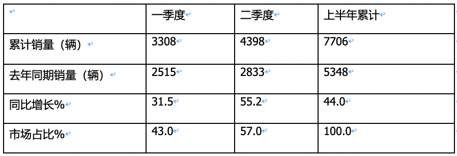 ----上汽大通累計銷售948輛,累計同比增長31.1%,市場占比12.3%,奪得累計銷量冠軍;