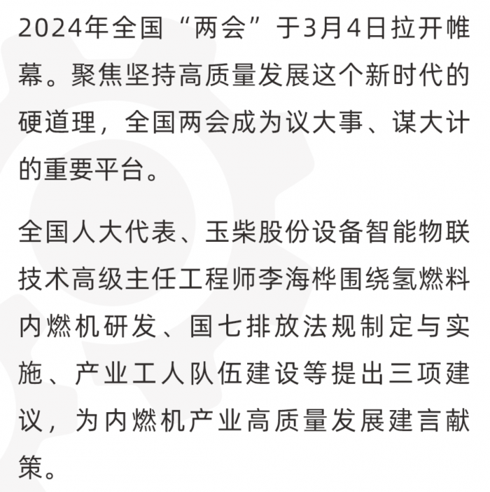 玉柴全國人大代表李海樺為內燃機產業(yè)高質量發(fā)展建言獻策