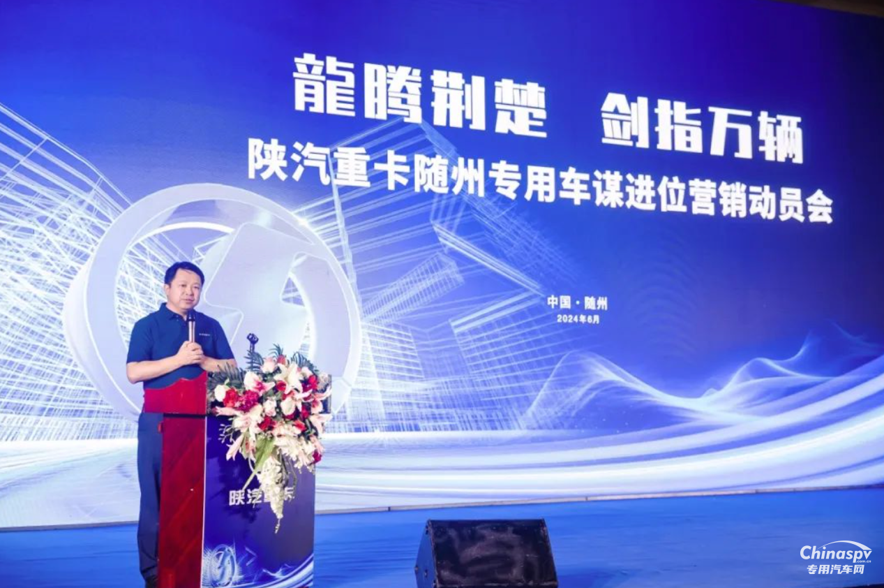 2024年6月18日以“龍騰荊楚劍指萬輛”為主題的陜汽隨州專用車謀進位營銷動員會在湖北隨州隆重召開。