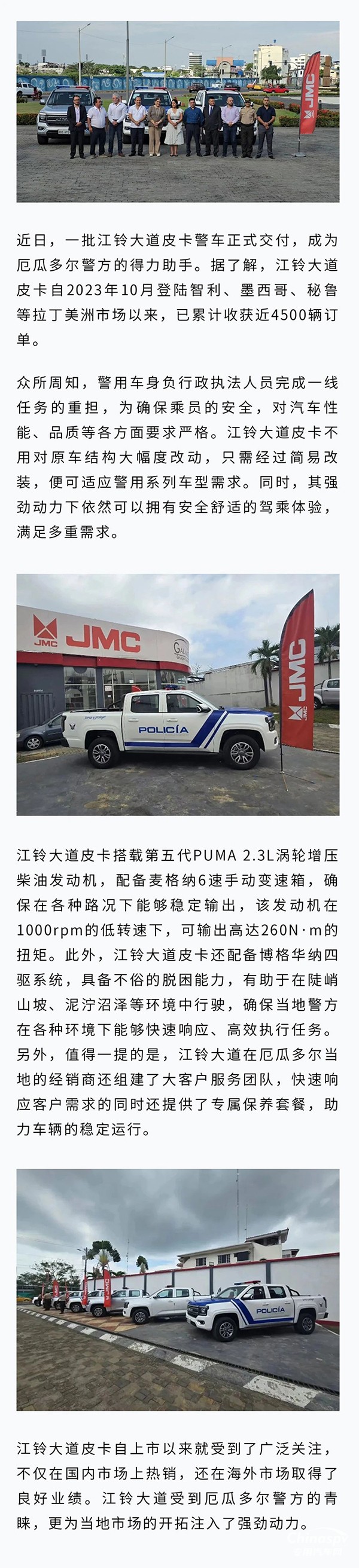 江鈴大道成功打入厄瓜多爾警用車市場 拉美市場累計(jì)4500輛訂單