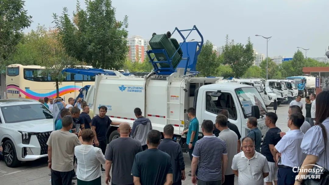 會(huì)場(chǎng)上,五征新開發(fā)的藍(lán)牌壓縮式垃圾車、純電動(dòng)壓縮式垃圾車和純電動(dòng)路面養(yǎng)護(hù)車備受客戶青睞,客戶紛紛進(jìn)行拍照和演示。