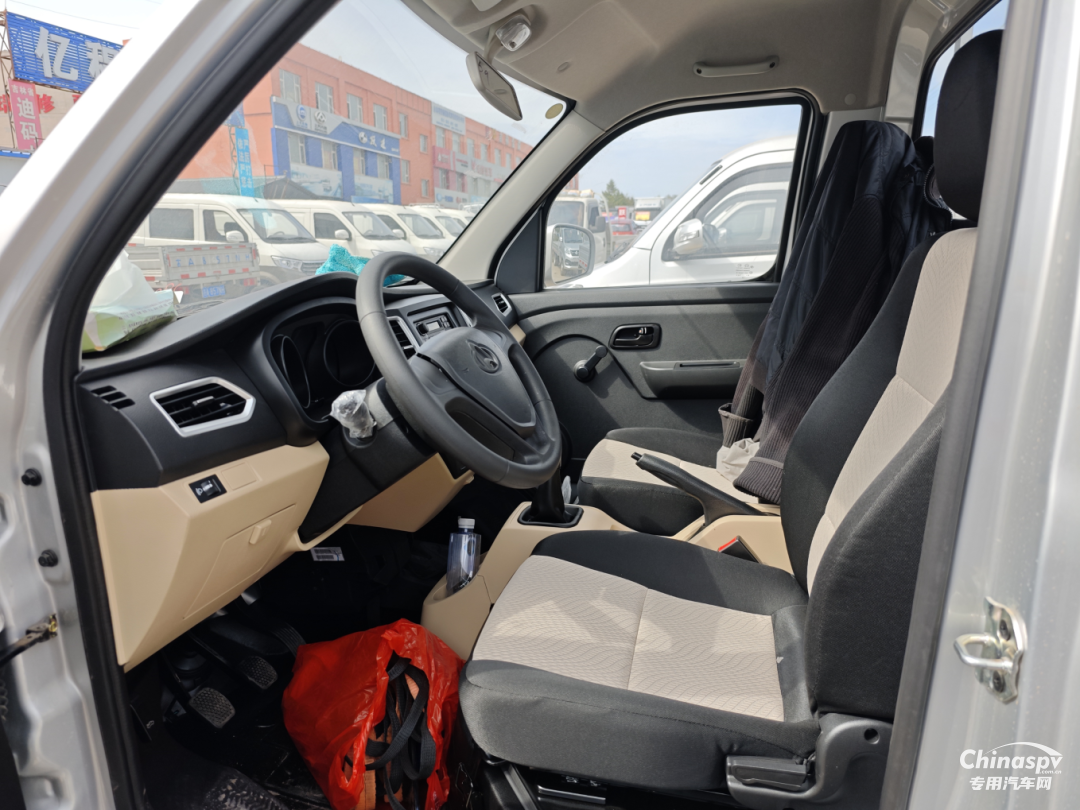 張師傅眼中的新豹T3,內(nèi)在的實用性也是可圈可點。平整底面貨箱采用加強筋外置設(shè)計,3100*1600mm的貨箱裝貨空間更大、運力更充分。承載式車身配備加厚吸能潰縮式大梁、加強加厚板簧,還配備同級領(lǐng)先的175R14LT貨車專用輪胎,載荷更穩(wěn)定。“我不少送貨地點地處偏遠鄉(xiāng)鎮(zhèn),特別是運輸設(shè)備、機器之類的附加值較高的貨物,平整的貨箱地板能起到固定作用,頻繁途經(jīng)坑洼的道路也極少出現(xiàn)底盤托低,整車前輕后重的情況,加上欄板整車高度不到2米,沒有繞道的煩惱。”