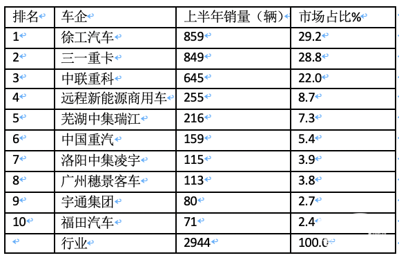 那么今年上半年充電牽引車、充電自卸車、充電攪拌車競(jìng)爭(zhēng)格局如何?主要競(jìng)爭(zhēng)企業(yè)銷量及排行如何?