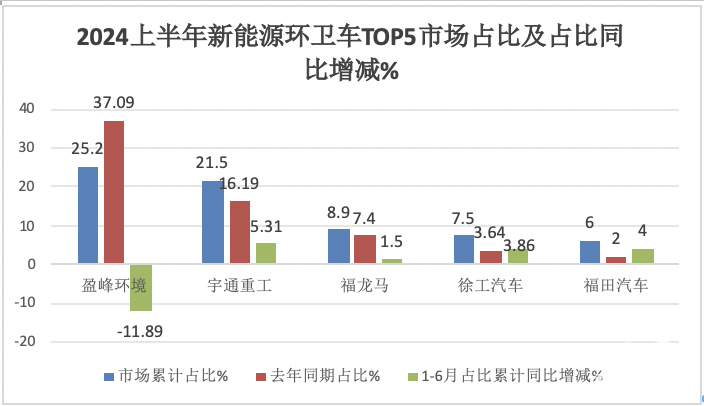 2024上半年新能源環(huán)衛(wèi)車:同比6連增純電動(dòng)領(lǐng)漲領(lǐng)跑;盈峰\宇通\福龍馬居前三