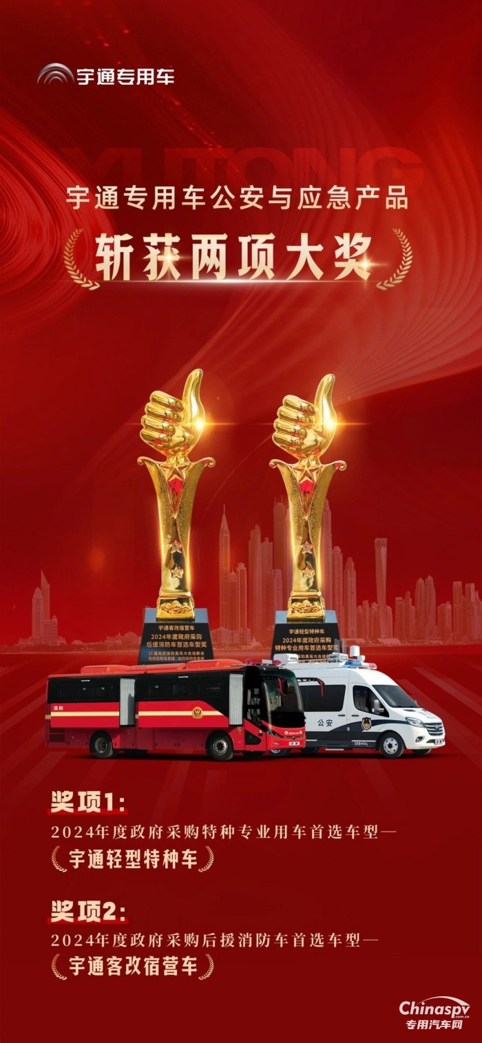 在這場萬眾矚目的活動(dòng)中,宇通輕型特種車與客改宿營車兩款產(chǎn)品,分別斬獲“2024年度政府采購特種專業(yè)用車首選車型獎(jiǎng)”和“2024年度政府采購后援消防車首選車型獎(jiǎng)”,再次印證了宇通專用車在公安應(yīng)急裝備領(lǐng)域的創(chuàng)新實(shí)力與行業(yè)地位。