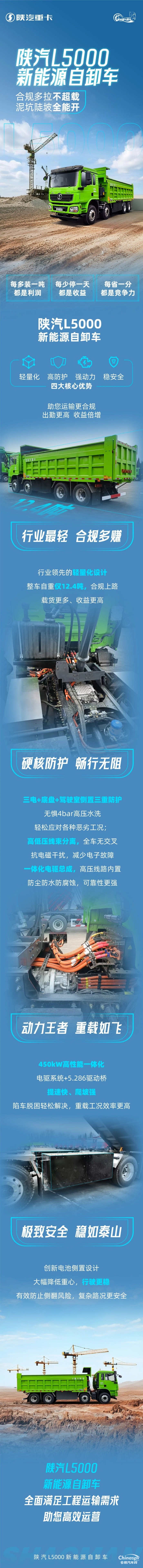 陜汽L5000新能源自卸車,合規(guī)多拉不超載,泥坑陡坡全能開!