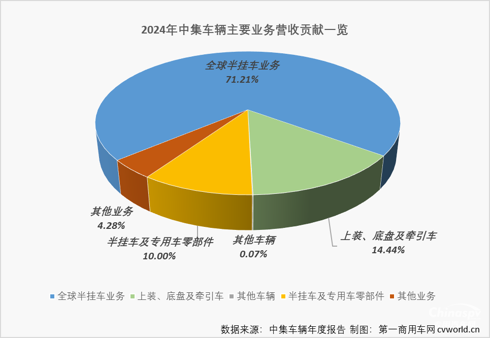第一商用車網(wǎng)注意到,中集車輛的兩大核心業(yè)務(wù)——全球半掛車和EV·DTB上裝業(yè)務(wù)在2024年分別實現(xiàn)收入149.5億元和30.3億元,占營收比重分別達到71.21%和14.44%,是中集車輛2024年最大營收來源,分別貢獻毛利26.61億元和1.46億元。