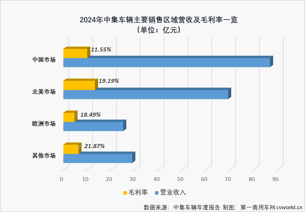 值得一提的是,2024年,中集車輛在各大銷售區(qū)域的毛利率繼續(xù)保持較高水平,其中中國市場、歐洲市場以及其他市場毛利率較上年均有所提升,分別提升了0.66個百分點、1.26個百分點和5.59個百分點,即便是出現(xiàn)下滑的北美市場,2024年毛利率也達到19.19%的較高水平(如下圖)。