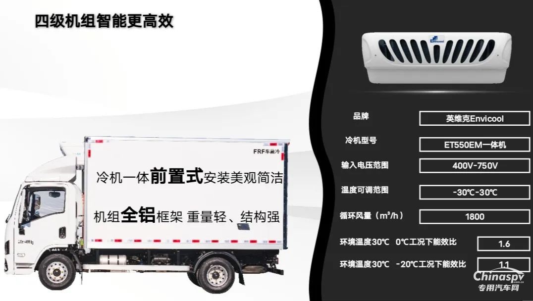 冷機采用全鋁框架與前置一體式設(shè)計,重量輕、能效比高,-20℃工況下能效比達1.1,較傳統(tǒng)冷機節(jié)能15%以上。