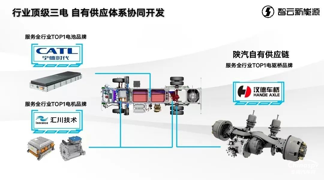 搭載寧德時代天行L電池、匯川扁線電機及自研電控系統(tǒng),三電深度融合,續(xù)航里程達400+公里,配合“2C快充+雙槍補能”技術(shù),18分鐘補能20%~80%,44分鐘補能20%~100%,滿足城際高頻運輸需求。