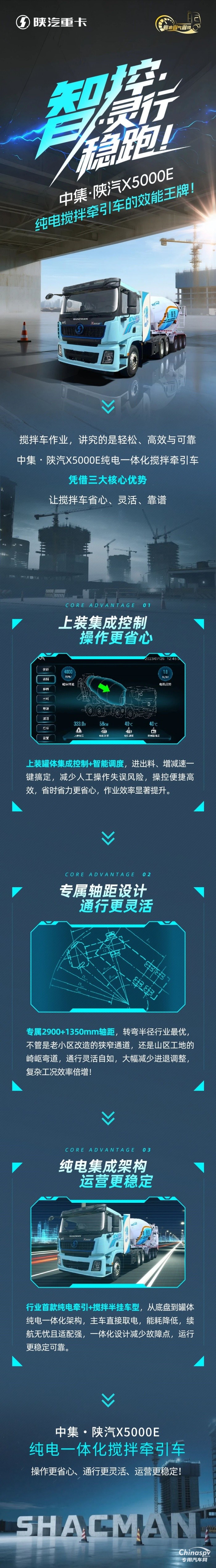 智控·靈行·穩(wěn)跑!中集·陜汽X5000E,純電攪拌牽引車的效能王牌!