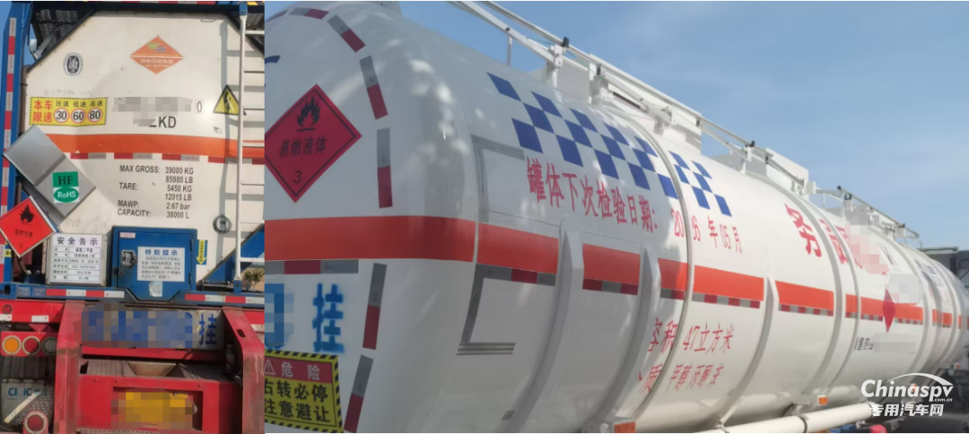 罐體兩側(cè)及后部應(yīng)按運(yùn)管部門規(guī)定粘貼橙色反光帶及反光標(biāo)志、車輛標(biāo)識(shí),懸掛與運(yùn)輸貨物相匹配的安全告示牌和標(biāo)志牌。