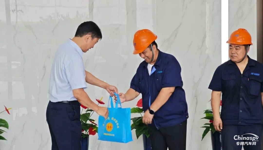 熱浪滾滾,關(guān)懷沁心。8月6日上午,新站高新區(qū)總工會(huì)領(lǐng)導(dǎo)一行來(lái)到勁旅環(huán)境科技股份有限公司,親切慰問(wèn)廠區(qū)一線工人,并送上夏日清涼禮包。