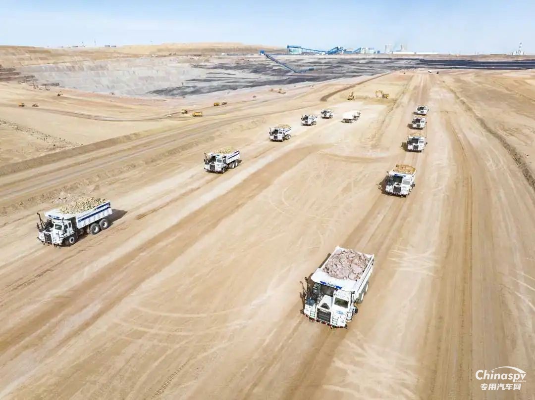 國能新疆能源準東露天煤礦無人駕駛礦卡在運送土方