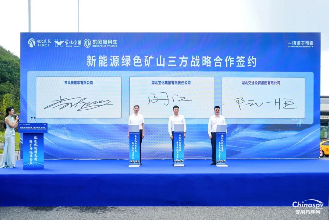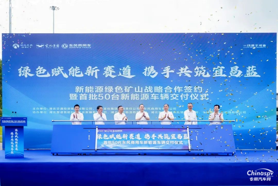 綠色賦能新賽道,攜手共筑宜昌藍(lán)。8月15日,東風(fēng)商用車有限公司、湖北交通投資集團有限公司(以下簡稱“湖北交投”)、湖北宜化集團有限公司(以下簡稱“湖北宜化”)在宜昌舉行“新能源綠色礦山戰(zhàn)略合作簽約暨首批50輛新能源車輛交付儀式”。