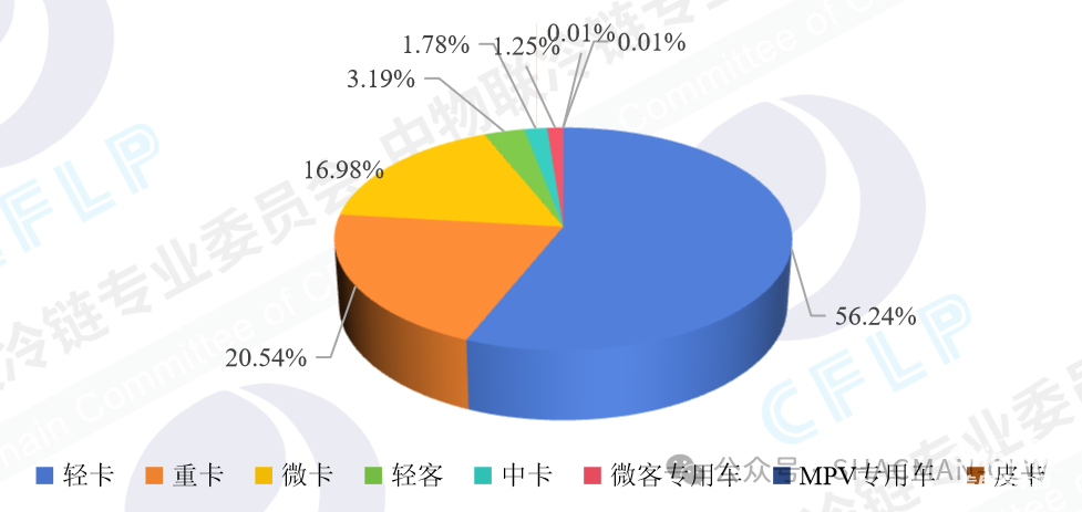 輕卡仍為市場主力,16,577 輛銷量占比 56.2%,同比增長 10.19%,城配場景需求增長(社區(qū)團購訂單量 + 30%)是核心支撐。微卡成為增長最快細(xì)分市場,銷量 5,004 輛,同比增幅 87.28%,生鮮電商 “最后一公里” 配送需求(日均訂單量 + 45%)與餐飲供應(yīng)鏈碎片化(單店日均配送頻次 + 25%)是主要推手。燃料結(jié)構(gòu)方面,柴油車占比持續(xù)下滑至 53.32%(同比 - 18pct),純電動車占比提升至 29.2%(同比 + 16pct),插電混動車型(尤其是甲醇增程式)銷量同比增長 285.9%,在冷鏈干線運輸中滲透率快速提升。