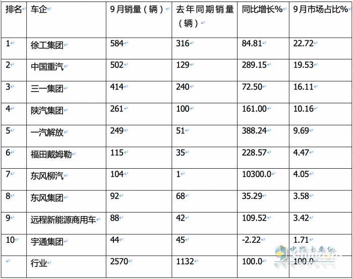 9月新能源自卸車:“金九”旺銷2570輛創(chuàng)史上新高!徐工\\重汽爭冠,東風柳汽領漲