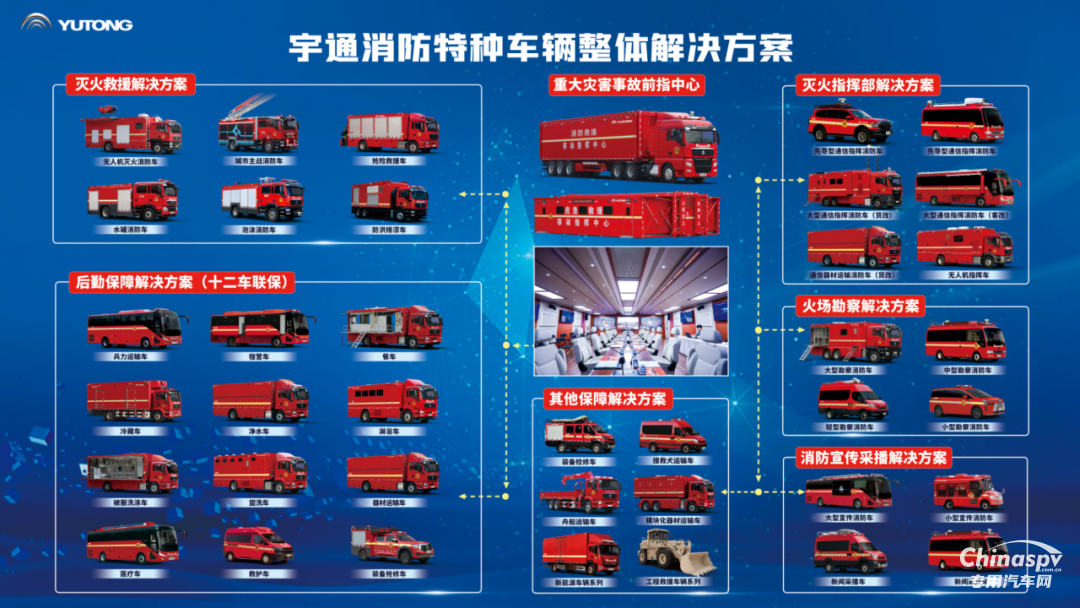 在本屆中國(guó)國(guó)際消防展上,宇通專用車向全球參展嘉賓直觀展示了其構(gòu)建的從需求論證、研發(fā)設(shè)計(jì)到生產(chǎn)交付的全流程一體化定制體系。依托這一體系和集團(tuán)的深厚底蘊(yùn),宇通專用車成功打造了立體化、專業(yè)化的產(chǎn)品矩陣。形成了涵蓋消防宣傳、通信指揮、兵力運(yùn)輸、搶險(xiǎn)救援、火場(chǎng)勘察、后勤保障等在內(nèi)的定制化產(chǎn)品解決方案。